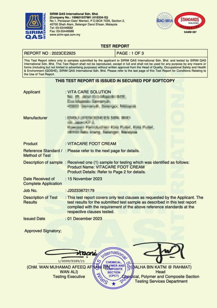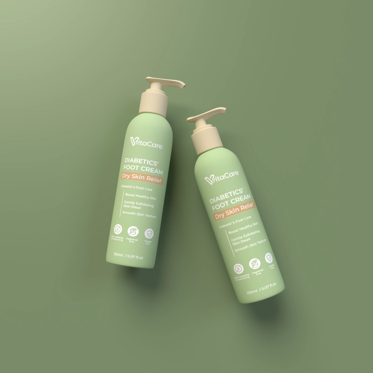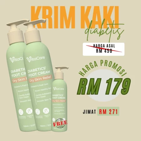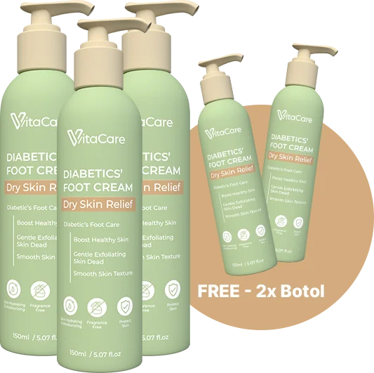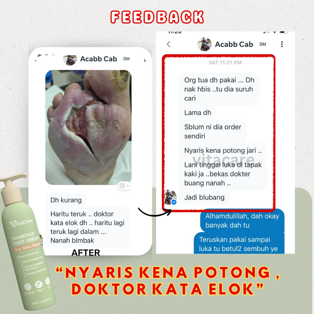 Hampir 80% Pesakit Diabetis Mengalami Komplikasi Masalah Kulit Kering,Bersisik,Gatal Dan Merekah. Aloe Vera Dan Ceramide dalam Vitacare Akan Memastikan Kulit Kaki Pesakit Sentiasa Dalam Kondisi Lembap dan Sihat