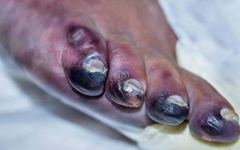 kaki dipenuhi dengan gangrene sehingga kaki hitam