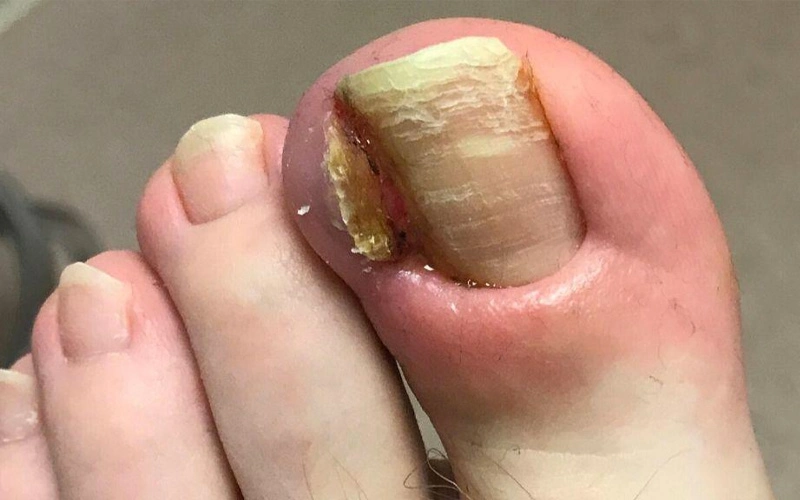 Kuku mengcengkam. Keadaan ini menyebabkan sakit celah jari kaki.